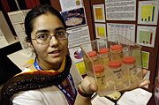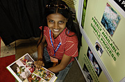 Intel ISEF finalist, Anitha Ramesh, 17, of India, shows off her project titled, "Parthenium, as a Friendly Plant!"