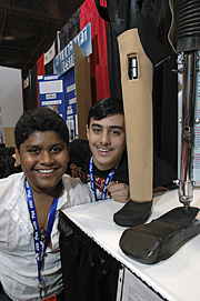 Intel ISEF finalists, Mihir Tandon (15) and Riddhiman Yadava (15), show off their project titled, "Improvised Artificial Limb". |