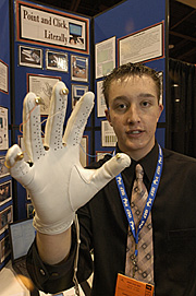Intel ISEF finalist, Christopher Messick, 15, of Monte Vista, Colorado, shows off his project titled, "Point and Click, Literally".