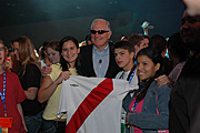 After the opening ceremonies for ISEF in Phoenix, Craig Barrett took photos with many students, including these ISEF finalists from Peru. |