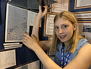 Intel ISEF grand prize winner, Gabrielle Alyce Gianelli, 17, of Orlando, Florida, won a top prize for her Space Science project, "Fractal Dimension Analysis of Putative Martian Coastlines." Gianelli used a topographic map of Mars and statistical methods to analyze geologic features that could indicate an ancient ocean coastline. She said she believes that understanding more about the geologic history of Mars will help foster a better understanding of Earth's geology. |