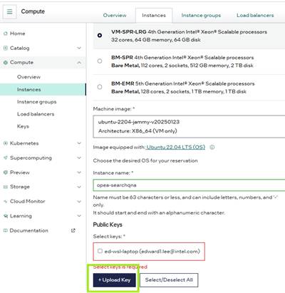 5. Generate and upload your SSH key before spinning up this machine. Go to SSH Keys — Intel® Tiber™ AI Cloud Docs for help generating your SSH key if necessary.
