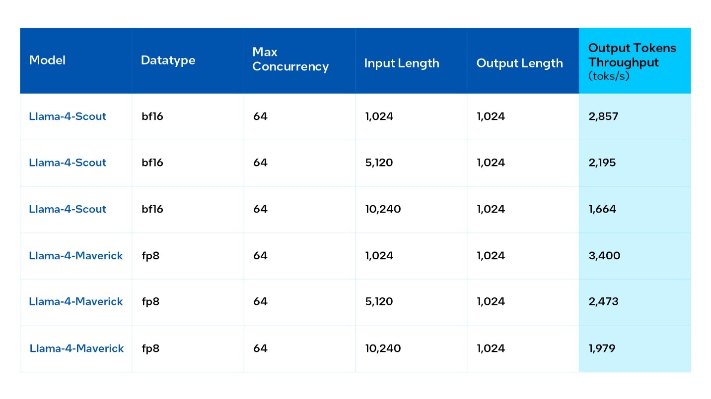 In our previous blog, Intel announced functional support for Llama 4 models across Intel® Gaudi® 3 AI accelerator and Intel® Xeon® processors. In this blog, we are going a step further, sharing our performance benchmarks for the Llama 4 herd of models, Scout and Maverick.