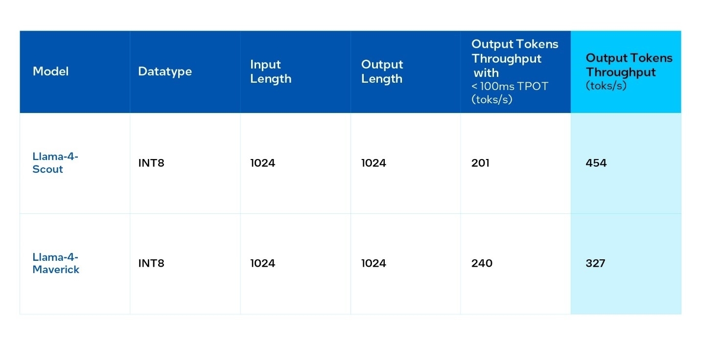Table 1. Llama 4 inference on 8 Intel® Gaudi® 3 Accelerators