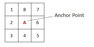 - The A letter indicates the anchor point position.