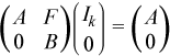 Here diagonal blocks A and B are square matrices of order k and N-k, respectively. If Ik denotes the unit matrix of order k, the equality