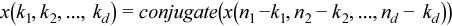 for kl = 0, ... nl-1 (l = 1, ..., d), where σ is a scale factor, δ = -1 for the forward transform, and δ = +1 for the backward transform.