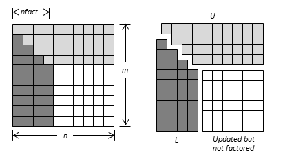 When incomplete factorization is specified, the first nfact rows and columns are factored, with the update of the remaining rows and columns of A as follows: