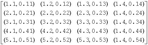Suppose A (1:5, 1:4) is the complex two-dimensional array presented by matrix