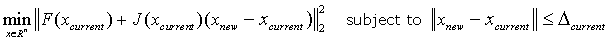 From a current point xcurrent, the algorithm uses the trust-region approach: