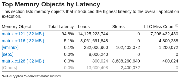 To find out an access to what array was the most expensive, run the Memory Access analysis with the Analyze dynamic memory objects option enabled: