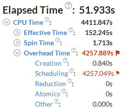Flagged Overhead Time metric and the Scheduling sub-metric signal a threading inefficiency problem that should be explored: