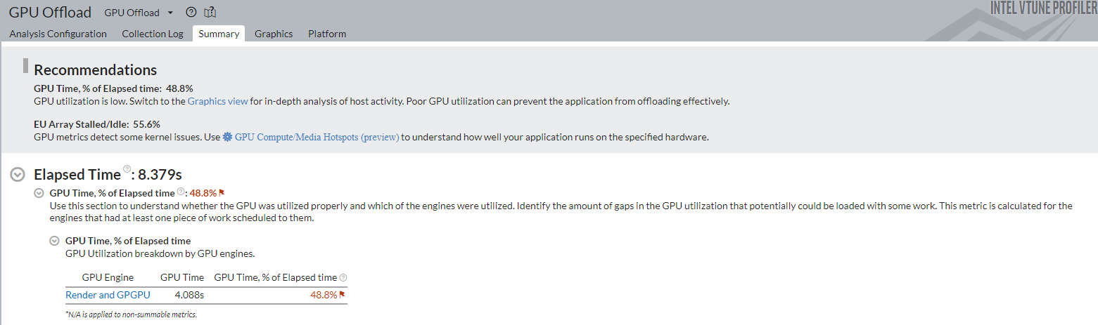 These details establish that GPU activity played an important role in the performance of this application. Next, let us run the GPU Offload Analysis to learn more.