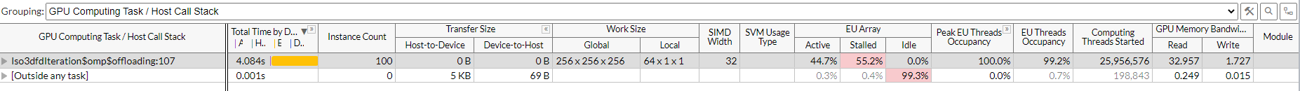 vtune -collect gpu-offload – src/iso3dfd 256 256 256 16 8 64 100