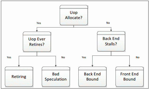Modern CPUs employ pipelining as well as techniques like hardware threading, out-of-order execution and instruction-level parallelism to utilize resources as effectively as possible. In spite of this, some types of software patterns and algorithms still result in inefficiencies. For example, linked data structures are commonly used in software, but cause indirect addressing that can defeat hardware prefetchers. In many cases, this behavior can create bubbles of idleness in the pipeline while data is retrieved and there are no other instructions to execute. Linked data structures could be an appropriate solution to a software problem, but may result in inefficiencies. There are many other examples at the software level that have implications on the underlying CPU pipelines. The Top-down Microarchitecture Analysis Method based on the Top-Down Characterization methodology aims to provide an insight into whether you have made wise choices with your algorithms and data structures. See the Intel® 64 and IA-32 Architectures Optimization Reference Manual, Appendix B.1 for more details on the Top-down Microarchitecture Analysis Method.