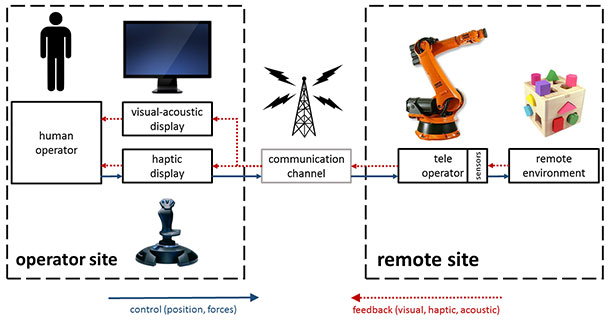 - A teleoperator should be able to get controlled from a remote place using a communication channel (e.g. communication via satellites).