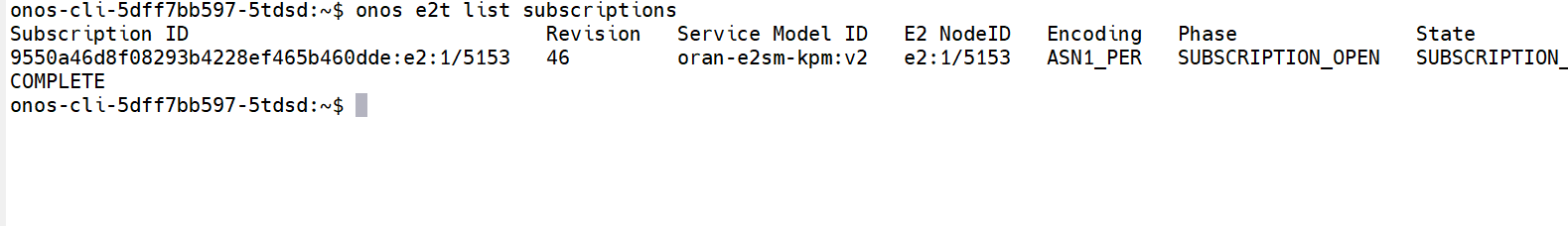 kubectl exec -it <onos-cli-pod> -n smartedge-apps -- /bin/bash onos e2t list subscriptions exit