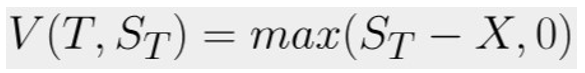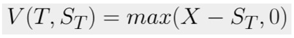 The value of a European option V(t,St) defined for 0 ≤ t ≤ T depends on the price St of the underlying stock. The option is issued at t = 0 and exercised at a time t = T called maturity. For European call and put options, the value of the option at maturity V(T,ST) is defined as: