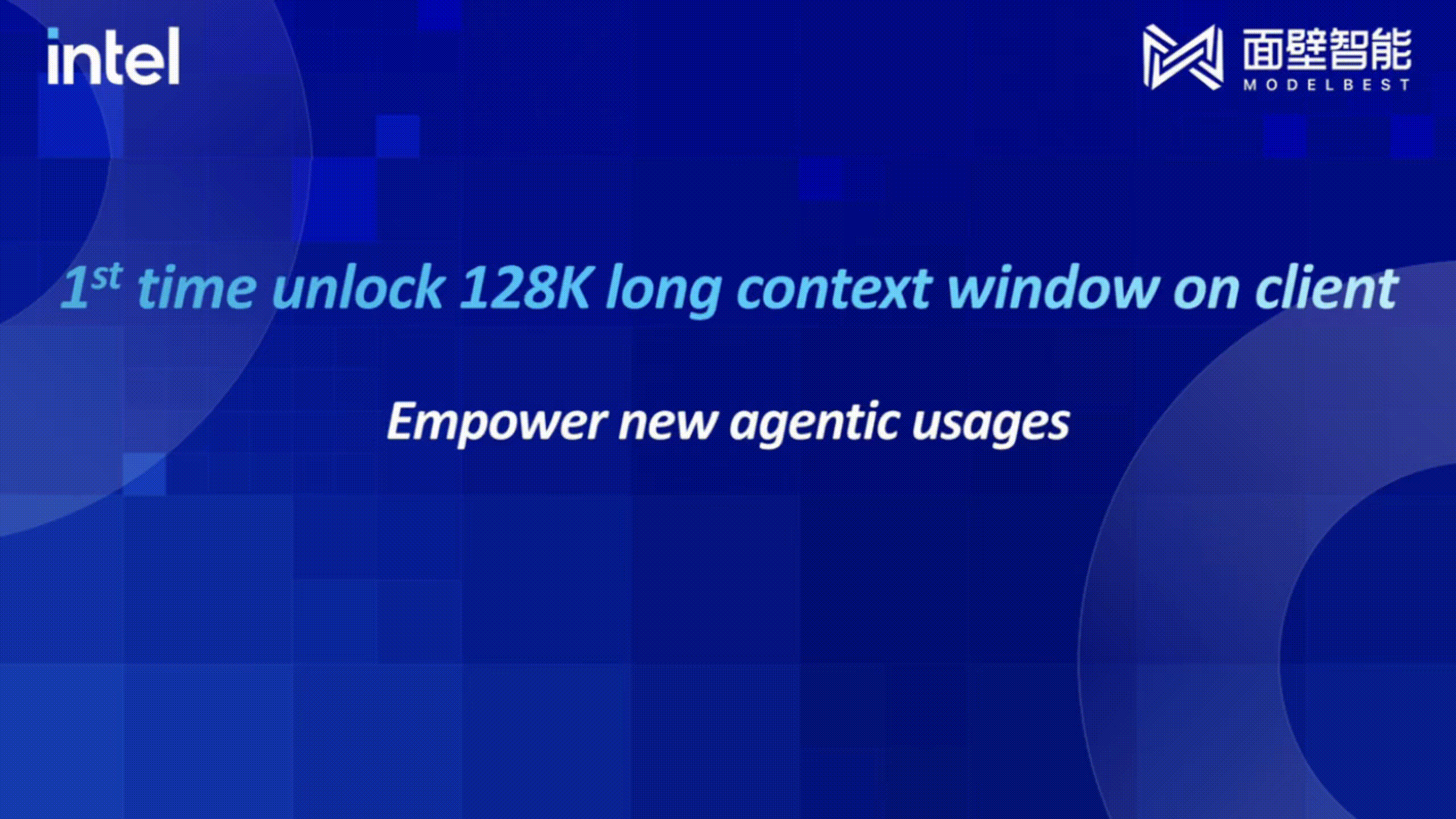 We successfully supported a 128K long-context window on the latest Intel® Arc™ Pro B60 Graphics while ensuring output quality as shown in Demo 1. This establishes a strong foundation for unlocking more client AI applications. Moving forward, Intel will continue to maintain deep collaboration and joint research and development with ModelBest to further enhance the performance of long-context window applications.