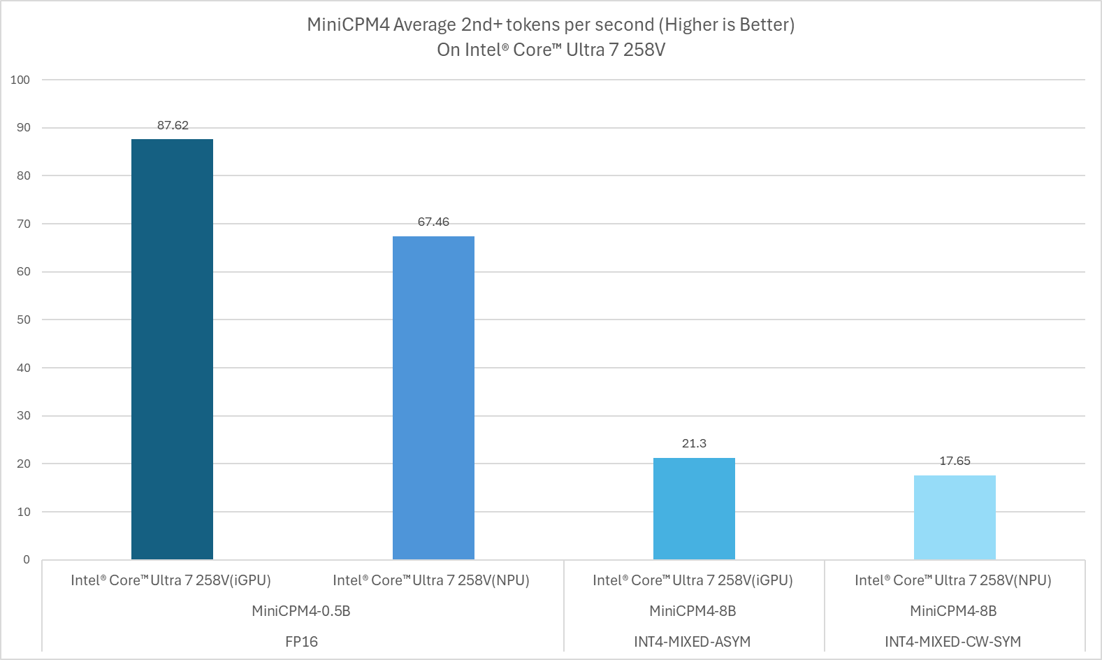 This lays a solid foundation for the widespread application and deployment of the MiniCPM4 series model on the Intel platform.