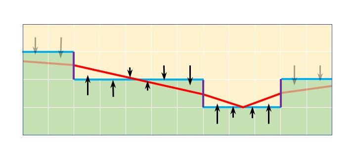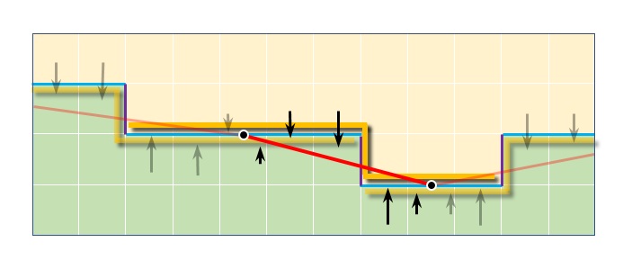 Figure 8. The revectorization (red line) and blending based on CMAA2's symmetrical Z-shapes. The blend takes place between the midpoint of the two long arms of the z-shape.