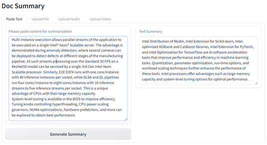 The UI for DocSum makes it easy to interact with the system. We provide two interface options: