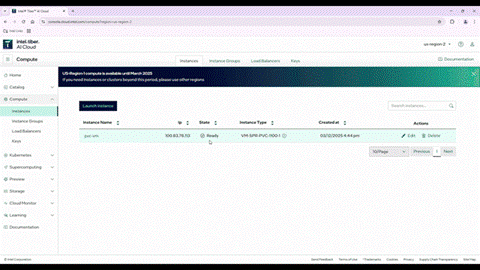Video: Intel® Tiber AI Cloud interface showing the instance launch process
