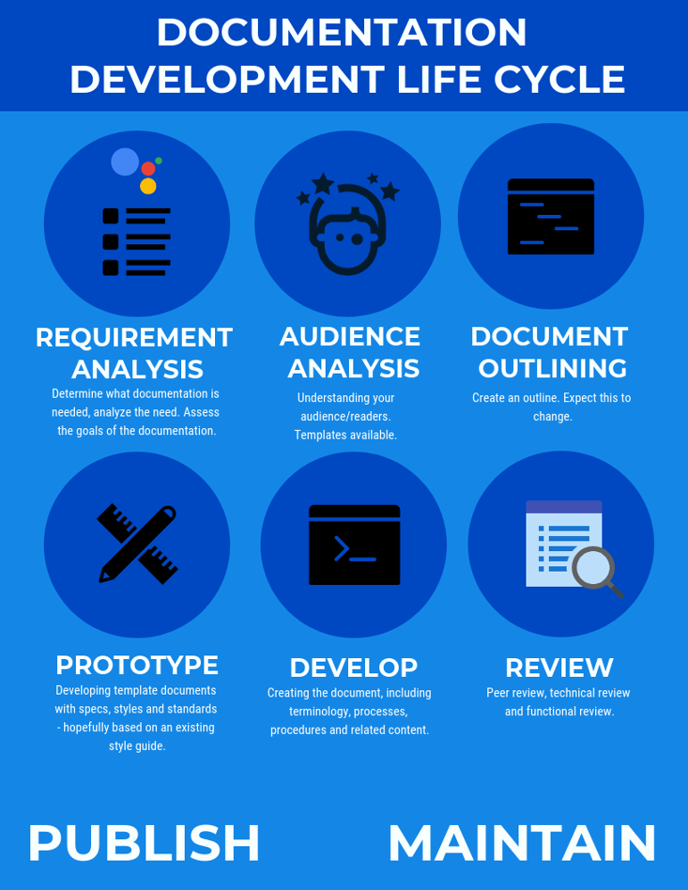 Visuals are nice at times. Here is a visual of the documentation development lifecycle for FOSS projects.