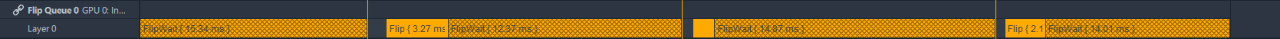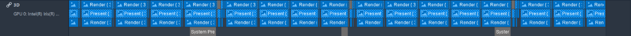 Contains all active video adapters and reflect the relationship between the application’s present calls, present packages of GPU and CPU queues, and Vertical Synchronization events of the monitor, otherwise known as VSync events.