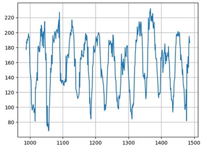 The plot output shows that the trained model does a good job of predicting the periodicity.