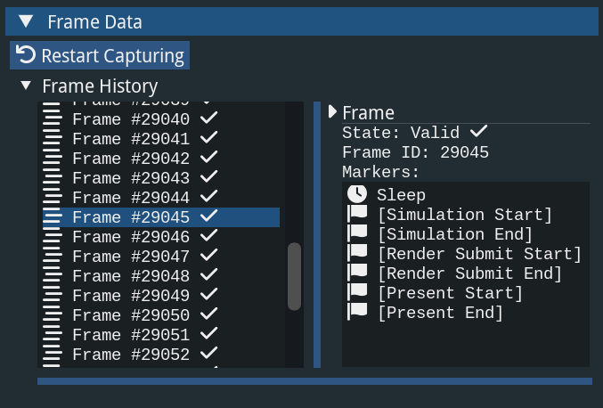 XeSS Inspector also displays all the Sleeps and Markers as raw data. You can check it in the Marker Data section.