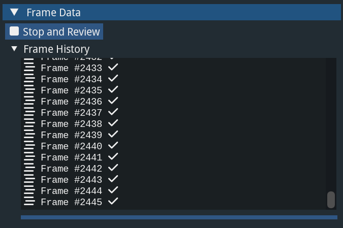 By clicking Stop and Review and the Frame History list, you can check the detailed information of each frame.