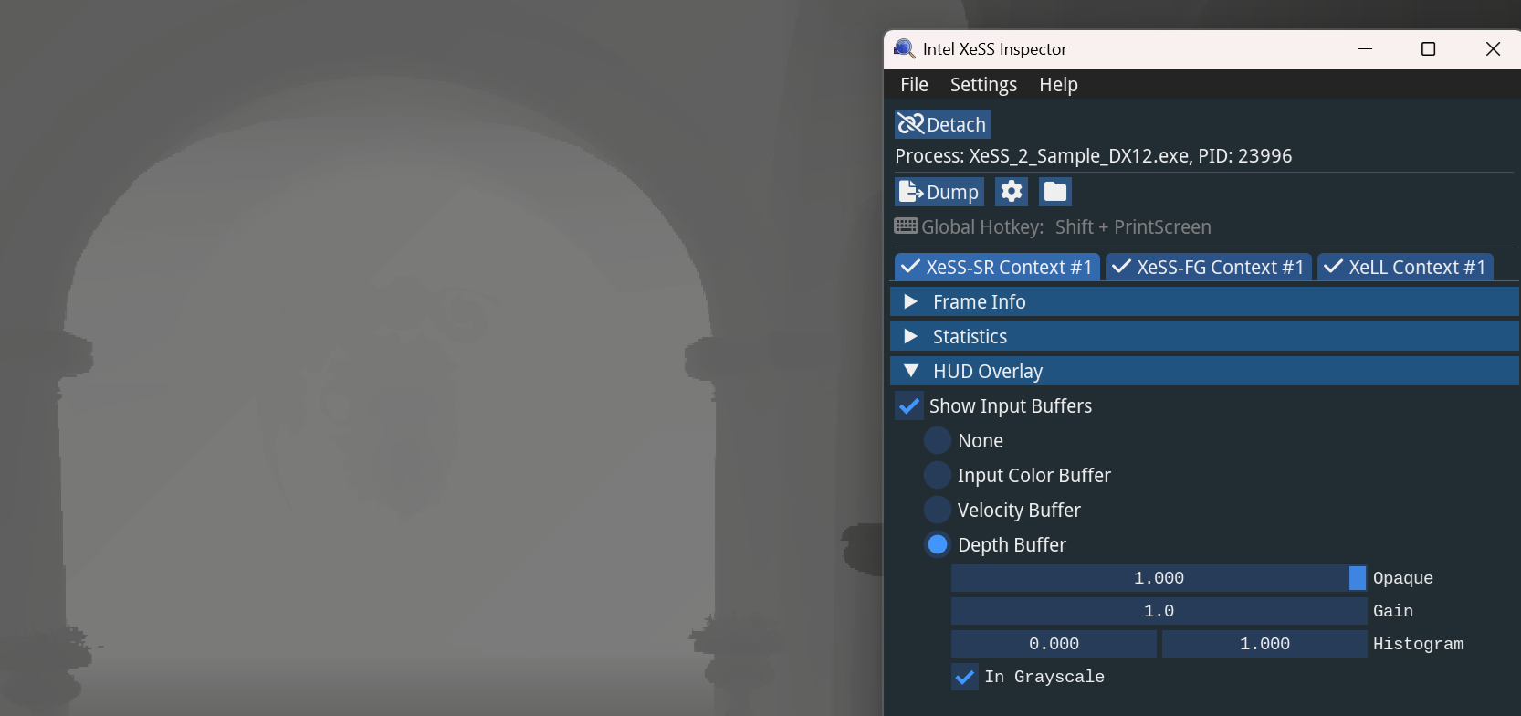 XeSS Inspector allows you to trigger the frame dump feature. You can dump the inputs and outputs of XeSS-SR and XeSS-FG over multiple frames for offline analysis.