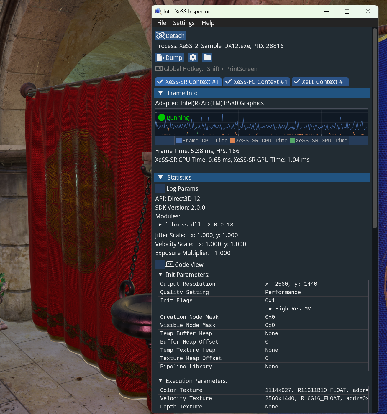 XeSS Inspector gathers and displays XeSS-SR state information, including: