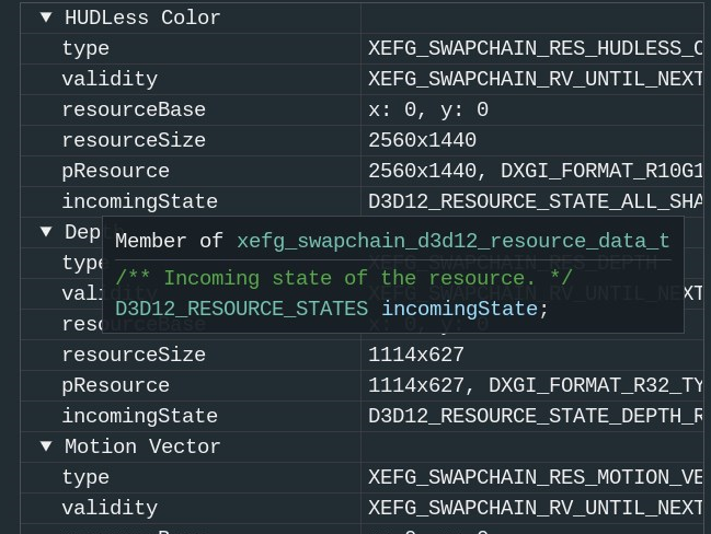 XeSS Inspector also gathers and displays XeSS-FG state information, including: