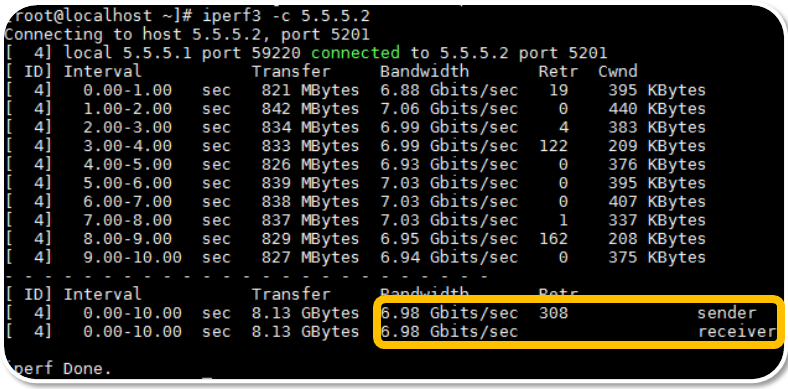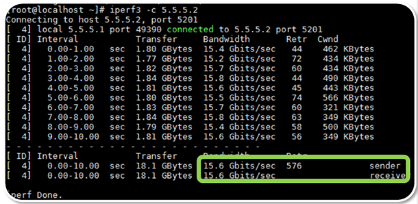 iperf3 –c 5.5.5.2