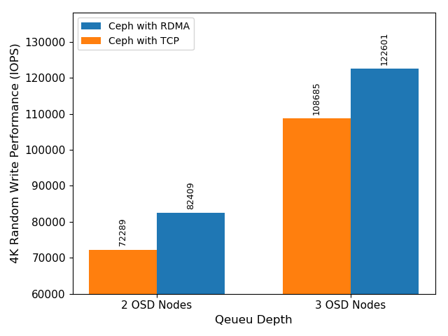 We find that iWARP RDMA accelerates the Ceph network layer (async messenger) and improves 4K random-write performance by up to 17 percent. In addition, Ceph with iWARP RDMA shows great scalability. When scaling the Ceph OSD nodes from two to three, the 4K random-write performance increased by 48.7 percent.