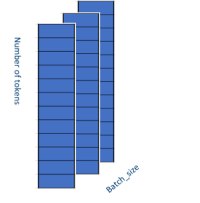 The most important optimization that we’ve done is to remove the padding/unpadding algorithm from the FFN layer. The input to this layer is a 3D padded tensor with shape [batch_size, input_length, Hidden_size]. The model has paddings in the second dimension, as shown in Figure 2, where blank blocks denote the padding value, which is zero. The model finds and removes the paddings before feeding the tensor into the dense layer and reshapes the tensor to 2D with shape [batch_size, number_tokens*Hidden_size], as shown in Figure 3. There is no reason to compute the values at the paddings because they will still be zero. However, after the dense layer, the model needs to put the padding back into the output tensor and restore the original shape (because it will be the input tensor for the next layer).