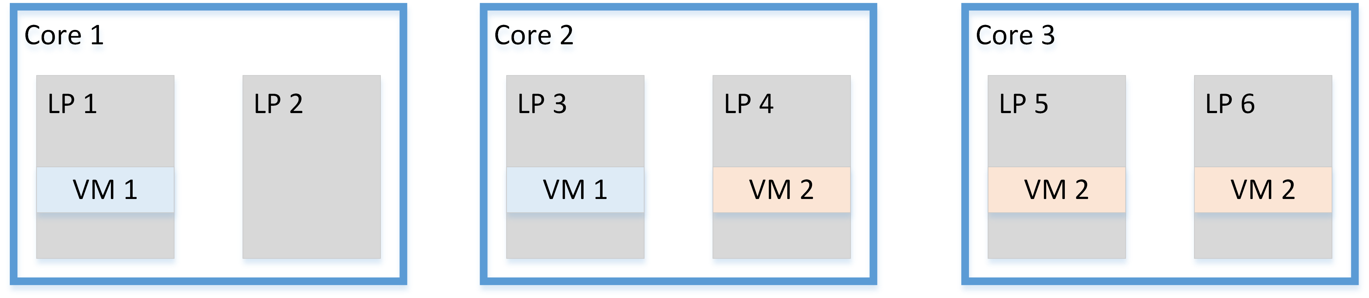 - The VMM may schedule threads to run guests at the same time if both logical processors are part of the same guest (or from mutually trusting guests)
