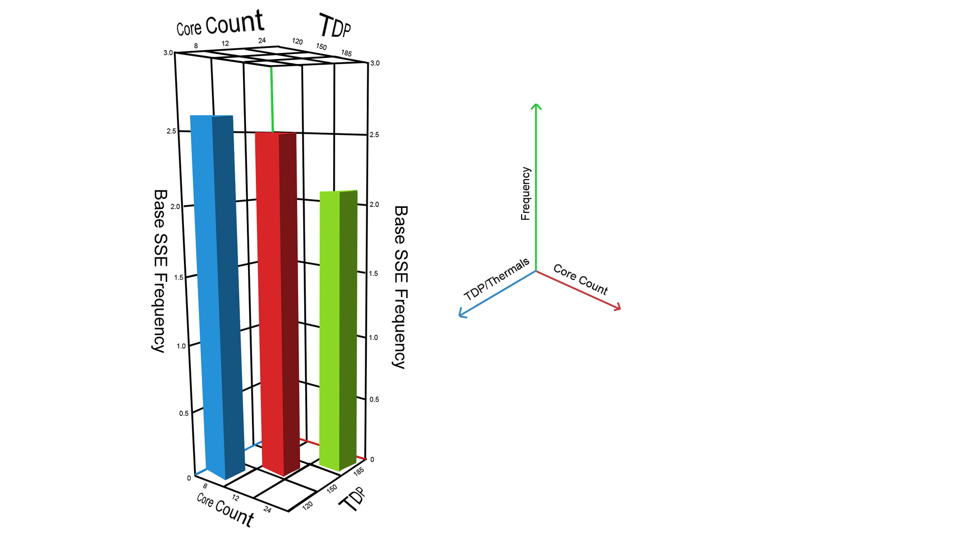 Fig 4. Intel SST-PP graph representing three different profiles and associated vectors. Frequency, core count and TDP for illustration only