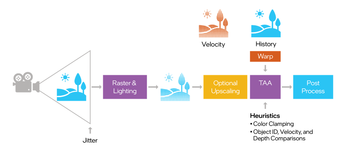Figure 2. Flow chart of a typical rendering pipeline with TAA.