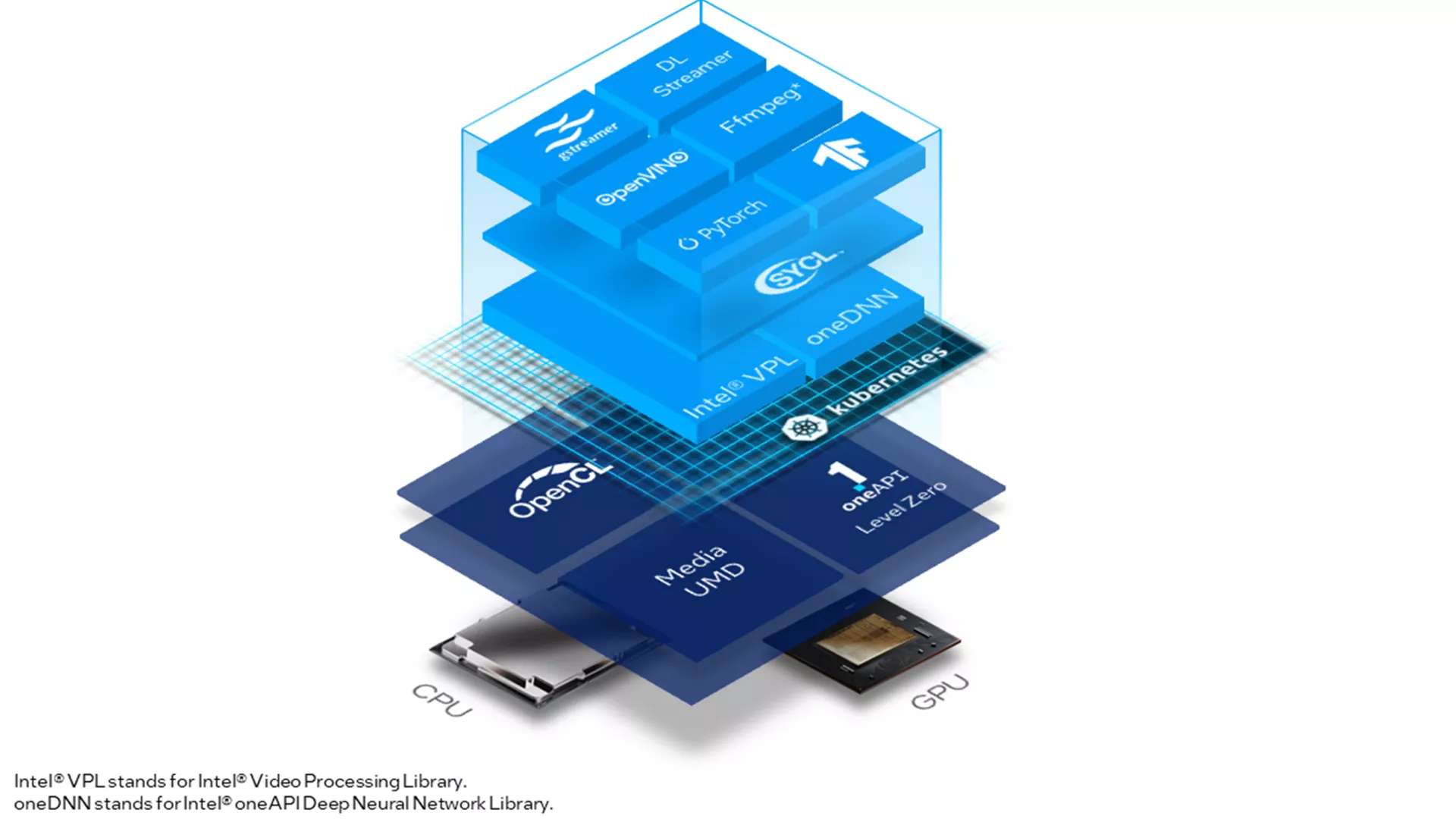 Access Intel hardware-accelerated video decode, encode, and frame-processing features via FFmpeg* and GStreamer. These industry standard frameworks allow video applications to "just work" across accelerators, hardware generations, and vendors with minimal code changes, making the oneAPI vision a reality for media too.