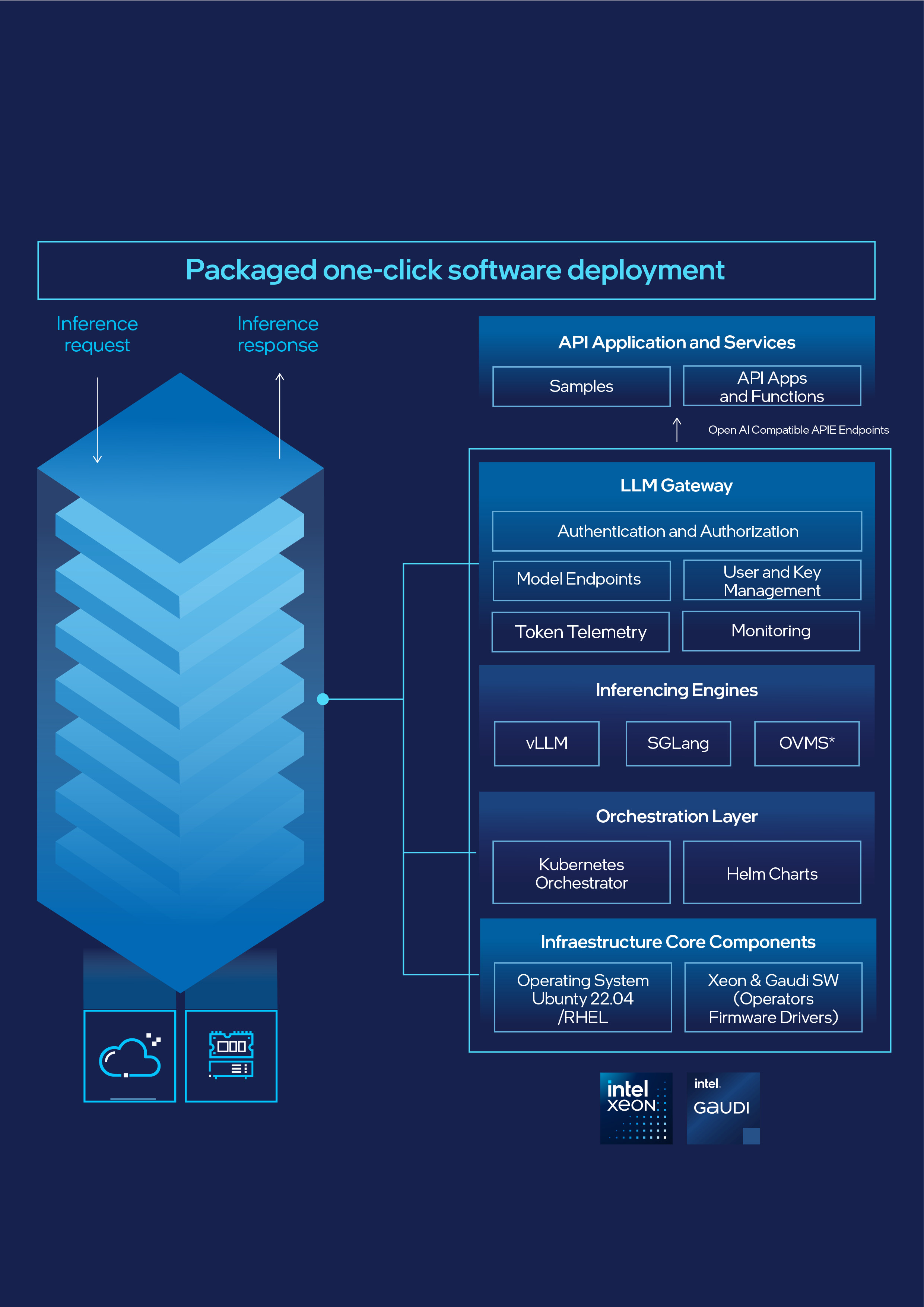 An open source, native large language model (LLM) serving stack designed for Intel® Xeon® processors and Intel® Gaudi® AI accelerators, deployable on cloud and on-premises environments.