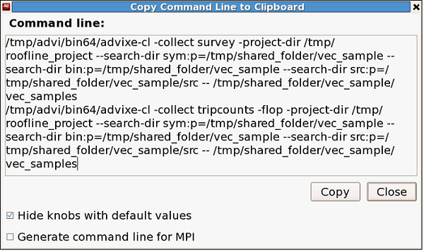 For more information about the Copy Command Line to Clipboard, see the Generate Command Lines from GUI in the Intel Advisor User Guide.