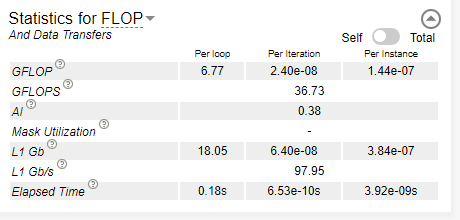 Use the FLOP data to analyze application memory usage and performance values that help you make better decisions about your vectorization strategy.