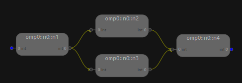 When you double-click the subgraph node, you see the following, where omp0::n0::n1 is the start of the parallel region and omp0::n0::n2 is the implicit barrier at the end of the node.