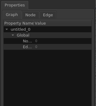 Properties tab: Displays information about a selected graph in the Graph tab, a node in the Node tab, and an edge in the Edge tab.
