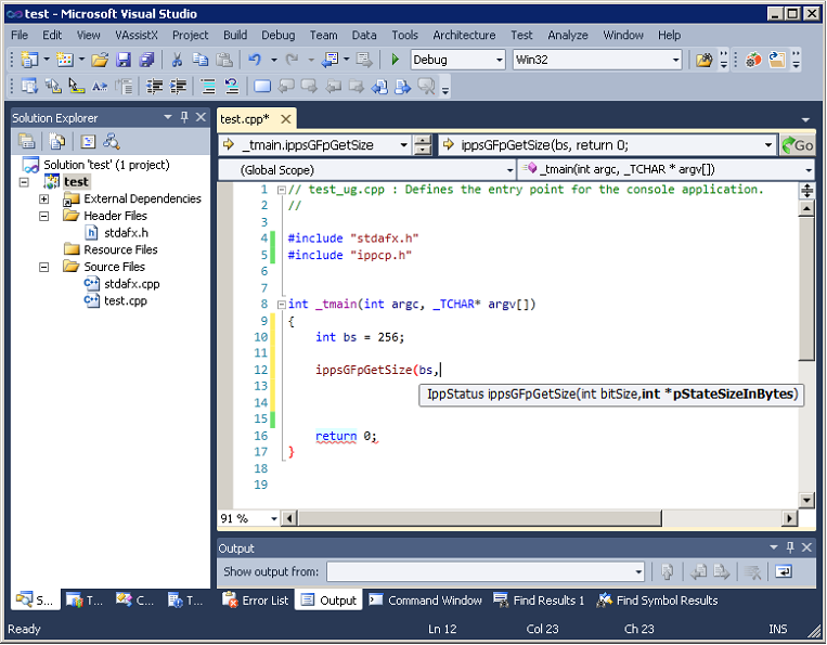 Intel® Cryptography Primitives Library supports two Microsoft* Visual Studio IntelliSense* features that support language references: Complete Word and Parameter Info.