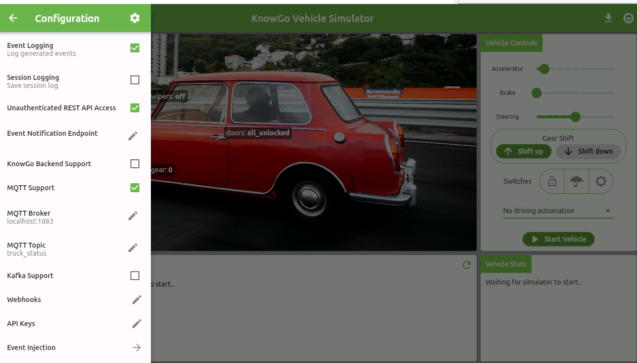 You can enable different driving modes on the KnowGo Simulator that can be used with all of the Edge Insights for Fleet reference implementations.