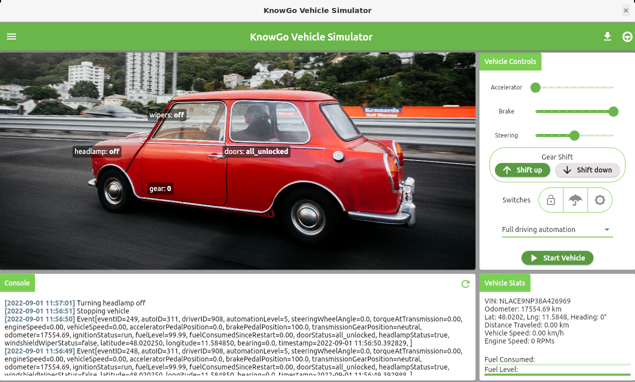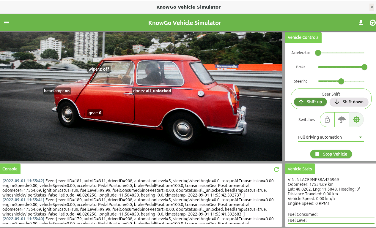 A Data injection option was added on the main web page of the Fleet Reference Implementations. If you select the KnowGo option after you configure and start the reference implementation, the KnowGo Simulator will start.